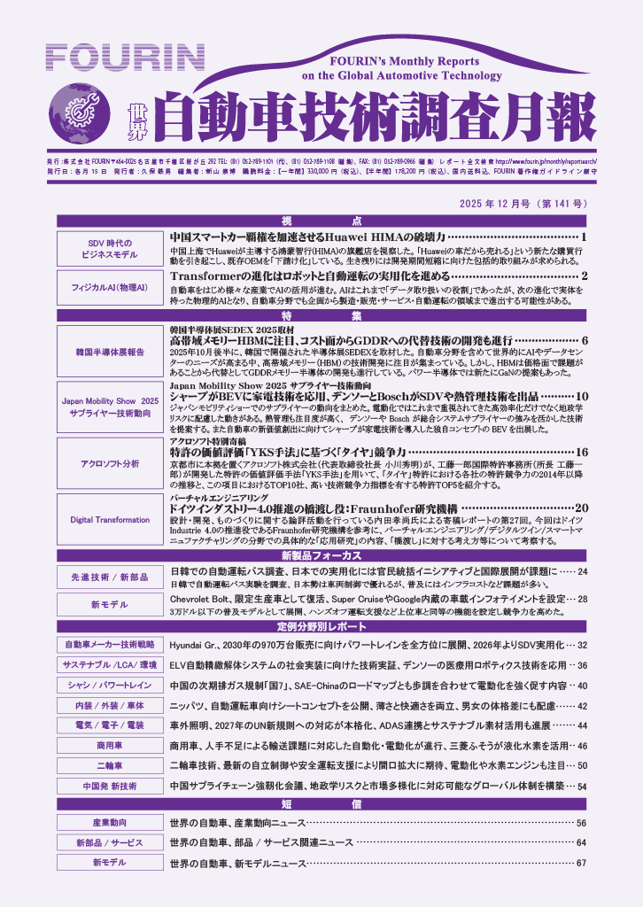 【世界自動車技術調査月報】YK値関連記事が掲載されました/2025年12月号